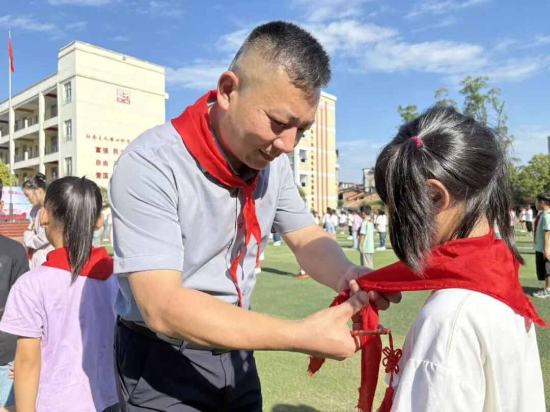 当象征着革命先烈鲜血的红领巾在胸前飘扬时,金穗学校新队员们的脸上洋溢着自豪与骄傲的笑容。在星星火炬的队旗引领下,新队员们必将牢记殷切嘱托,坚定不移地传承红色基因,积极主动地践行“强国复兴有我”的使命担当。