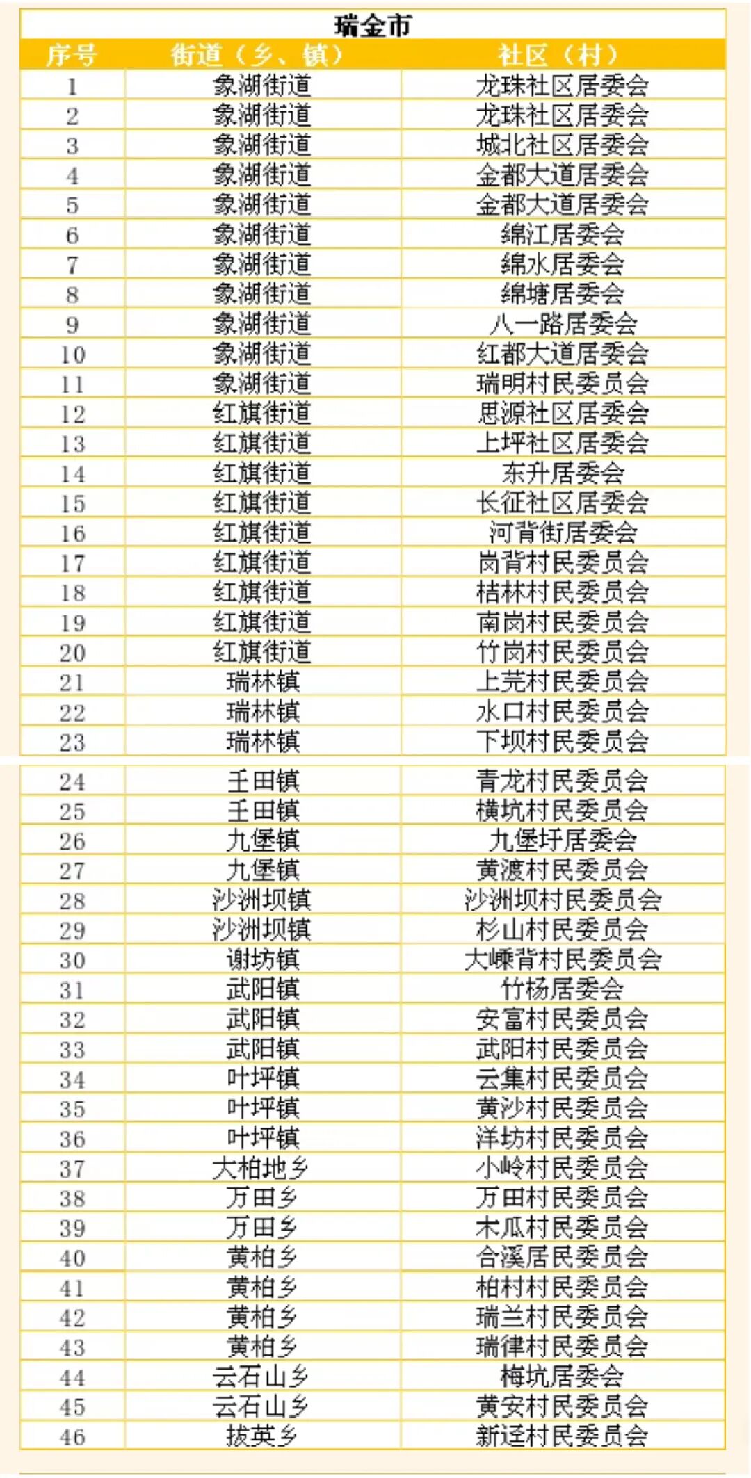 其中瑞金市抽取了46个社区(村)