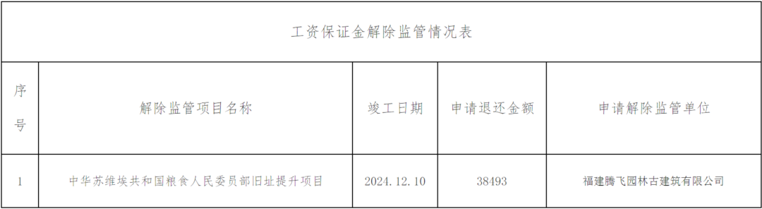 瑞金市工程建设项目民工工资保证金申请解除监管公示