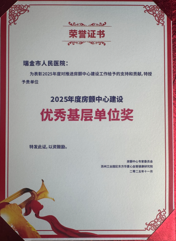 2024年11月,凭借扎实工作与专业实力,成功通过中国房颤中心认证,并获评“2024年度房颤中心建设优秀质控单位”荣誉称号,标志着我院诊疗水平获权威认可。