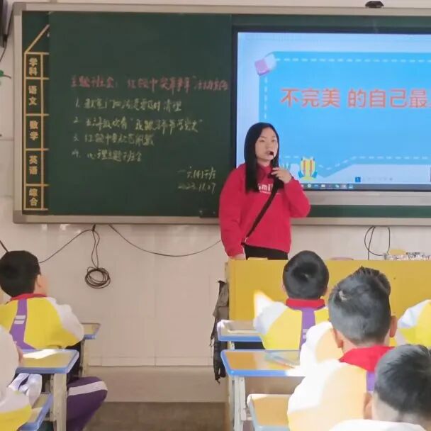 讲台下,她用眼神赞许、微笑鼓励、话语肯定,让每个孩子都敢举手、愿表达。课间10分钟,她坚持 “把椅子搬进学生中间”,近距离的接触学生,抓住谈心的好机会。