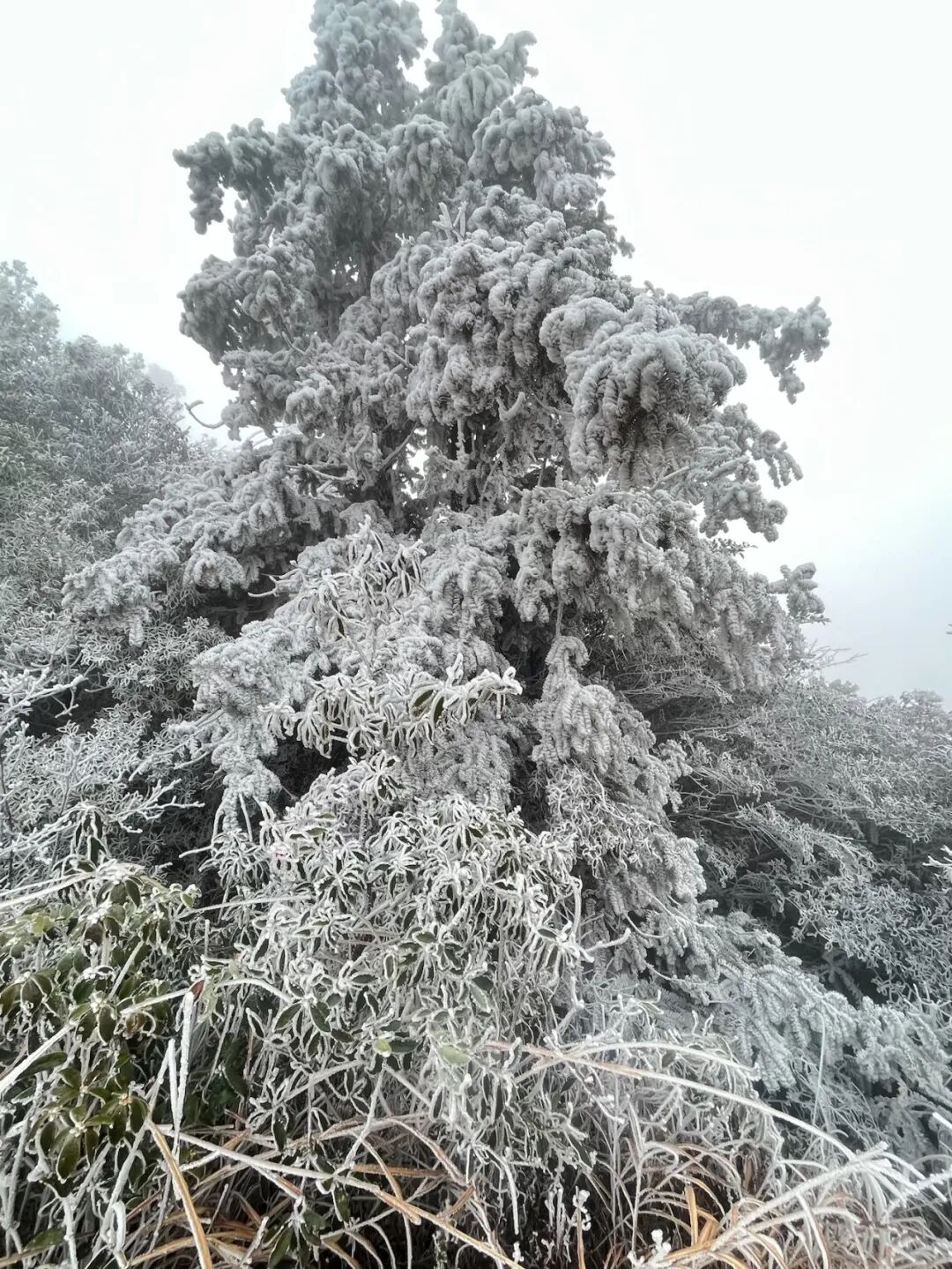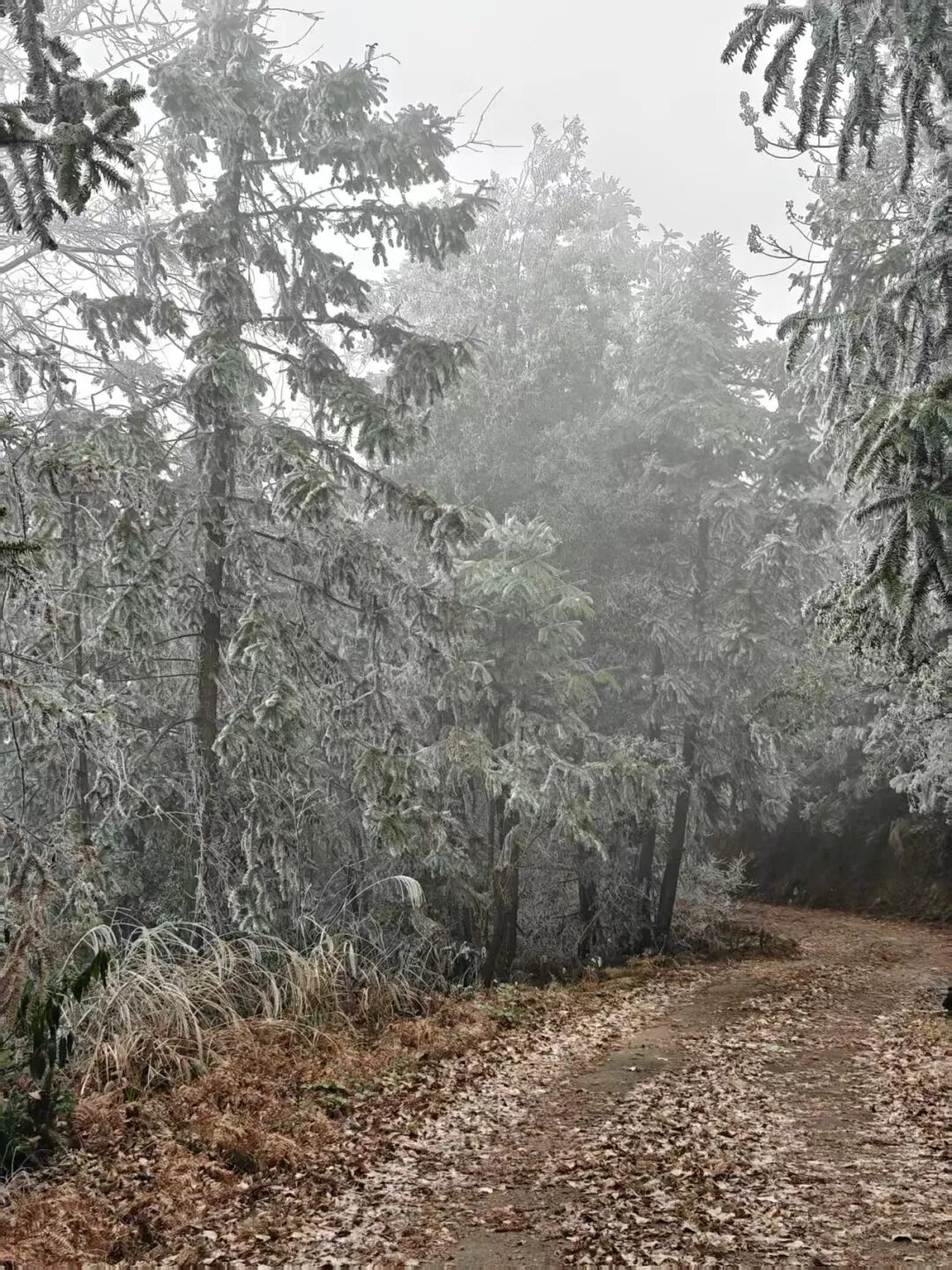 部分高海拔地区出现雾凇景观