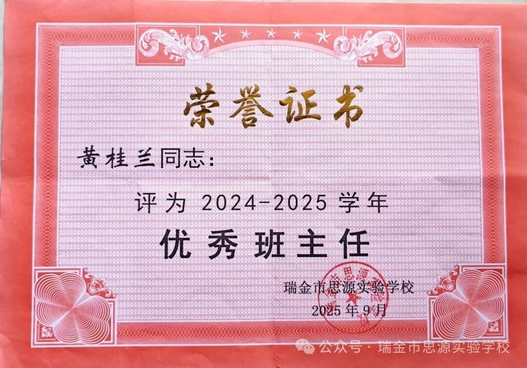 在教育的麦田里,黄桂兰老师以二十余年的坚守为犁,以爱心责任为种,深耕班主任岗位,用“优秀班主任”的荣光,诠释着育人的本质。无论面对哪个年龄段的学生,黄老师都以最纯粹的教育初心,成为孩子们成长路上的温暖守护者。
