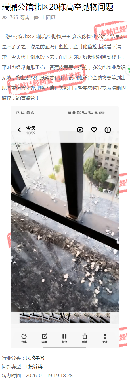 刚刚,瑞金网小编从客家新闻网“问政赣州”栏目获悉,有网友在该栏目留言咨询:瑞鼎公馆北区20栋高空抛物问题,针对网友提出的相关问题,瑞金官方作出了明确的回复,具体详情如下:...
