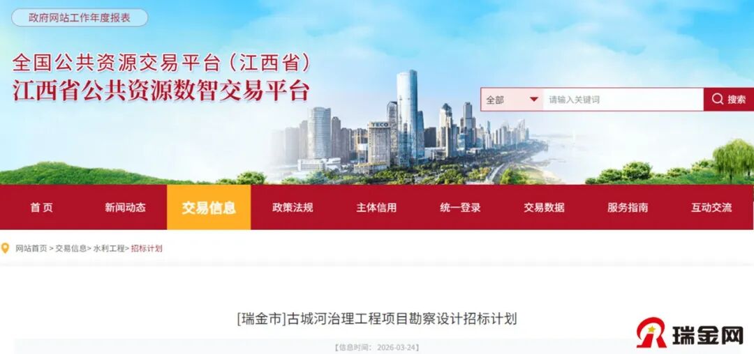 刚刚,瑞金网小编从江西省公共资源交易平台网获悉,瑞金市古城河治理工程项目勘察设计招标计划发布,项目总投资约7130万元,设计费用约246.16万元,预计2026年4月招标。