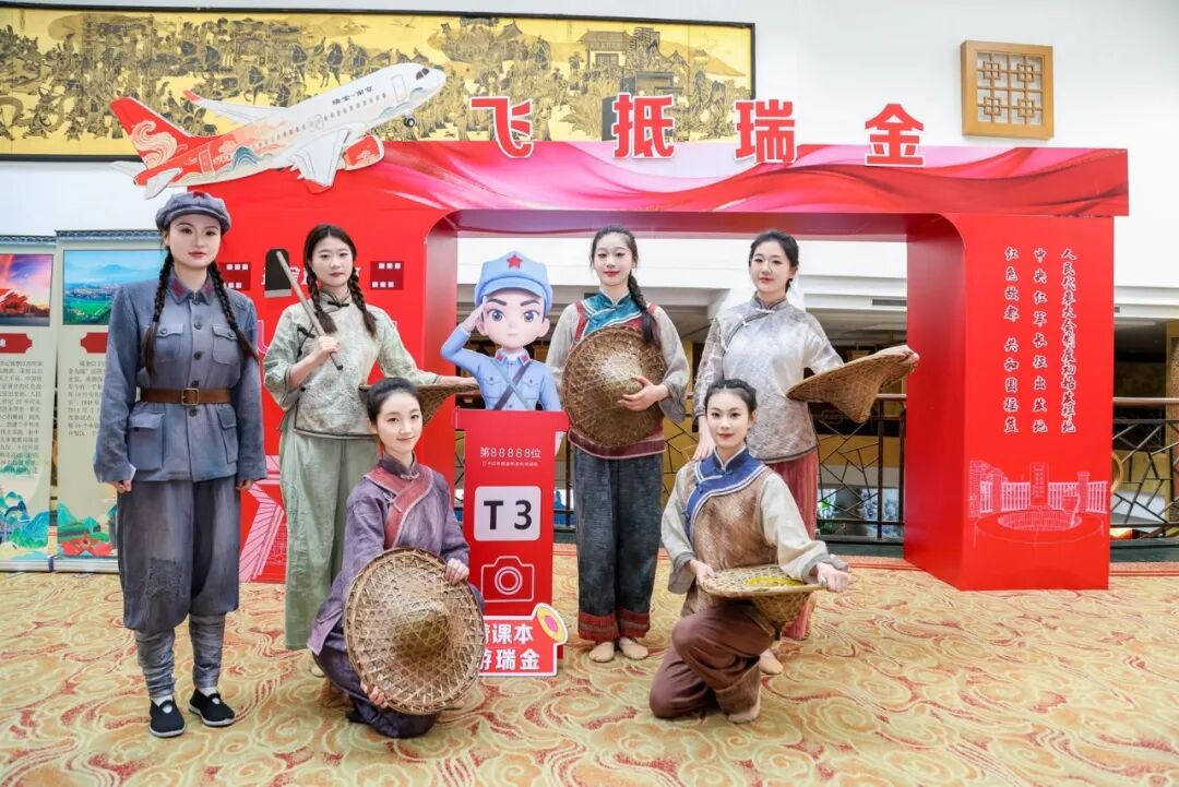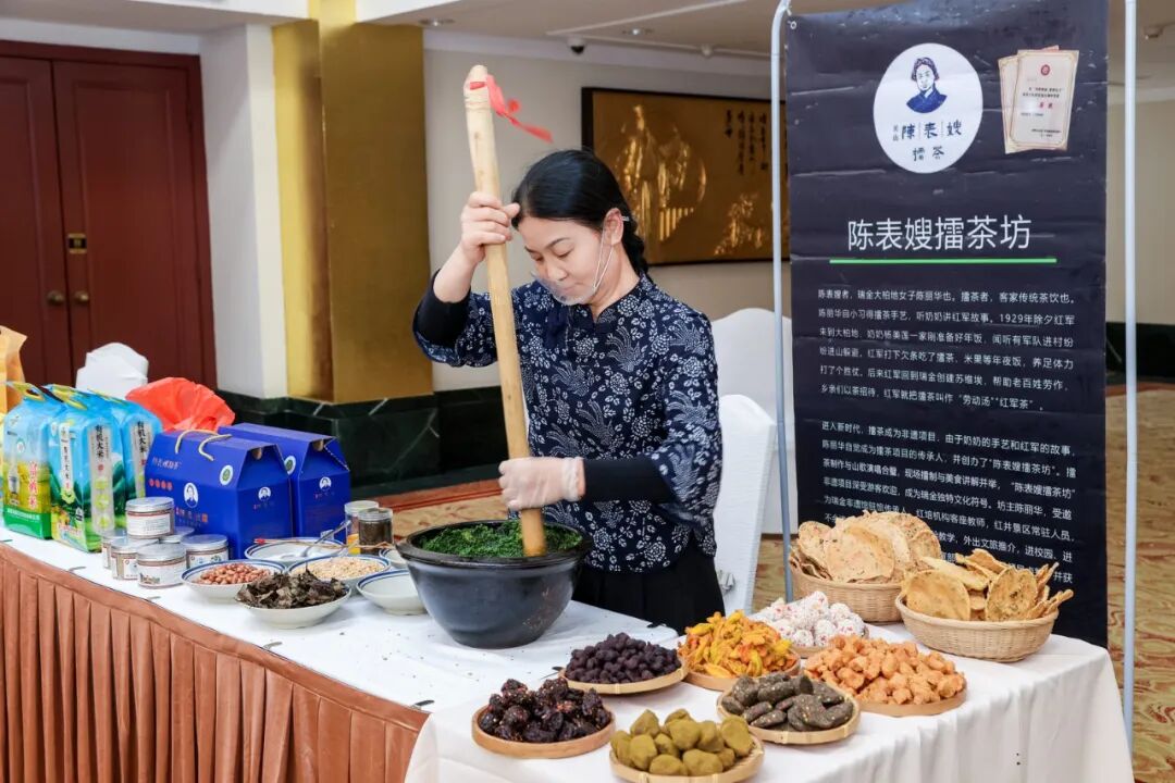活动期间,瑞金特色文艺展演精彩纷呈。《瑞金旅游宣传片》播放了红色故都的厚重历史,客家歌舞《斑鸠调》、情景朗诵《一生守望》、《瑞金瑞京·向光而行》剧目、国家级非物质文化遗产赣南采茶戏《刘二与媒婆》等文艺节目相继上演,生动展现了瑞金的红色文化与客家风情,演出中还进行了三轮瑞金景区门票大礼包抽奖环节。场外同步设置了瑞金农特产品摊位,廖奶奶咸鸭蛋、客家擂茶、瑞金文创等特色产品集中展示,吸引众多与会嘉宾驻足品鉴。(融媒体记者邓诗怡)