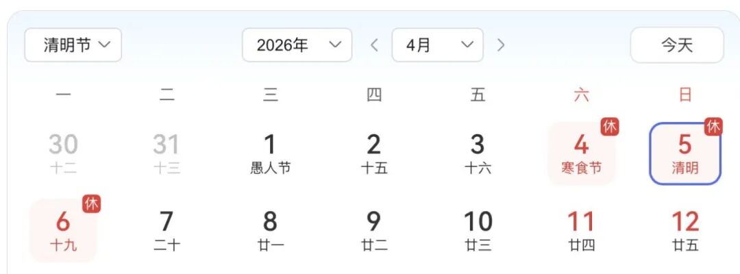 2026年清明节假期为4月4日至6日,共3天,4月7日(星期二)上班。
